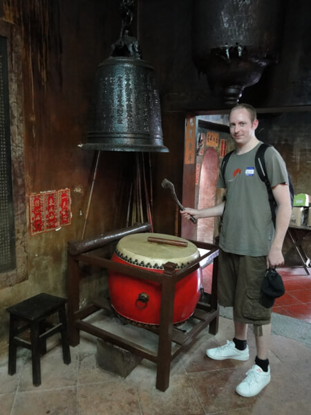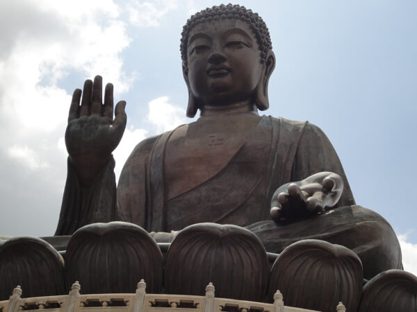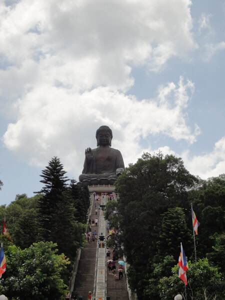 The tour we had booked on was on a day trip to see Lantau Island and the Giant Buddha. The day after we had arrived we departed on our full day tour. We started with a ferry to Lantau Island. This was followed by a short stop at a secluded beach before we continued onto the Tai O fishing village. This fishing village is built on the water and as such all the houses are on stilts in the south china sea. The locals transport is via boat. We also saw many types of catch here from shark fins, the pointless Chinese delicacy which needlessly endangers sharks, to puffer fish. After this we proceeded onto the Giant Buddha. This was by far the largest sitting Buddha that we had ever seen. Next we proceeded through the procession of statues to the Po Lin Monastery where we had a vegetarian lunch. As you may expect this thrilled Kat. After lunch we caught a cable car journey back to mainland Hong Kong. That evening we enjoyed some bizarrely presented cocktails and random local food before having an early night.