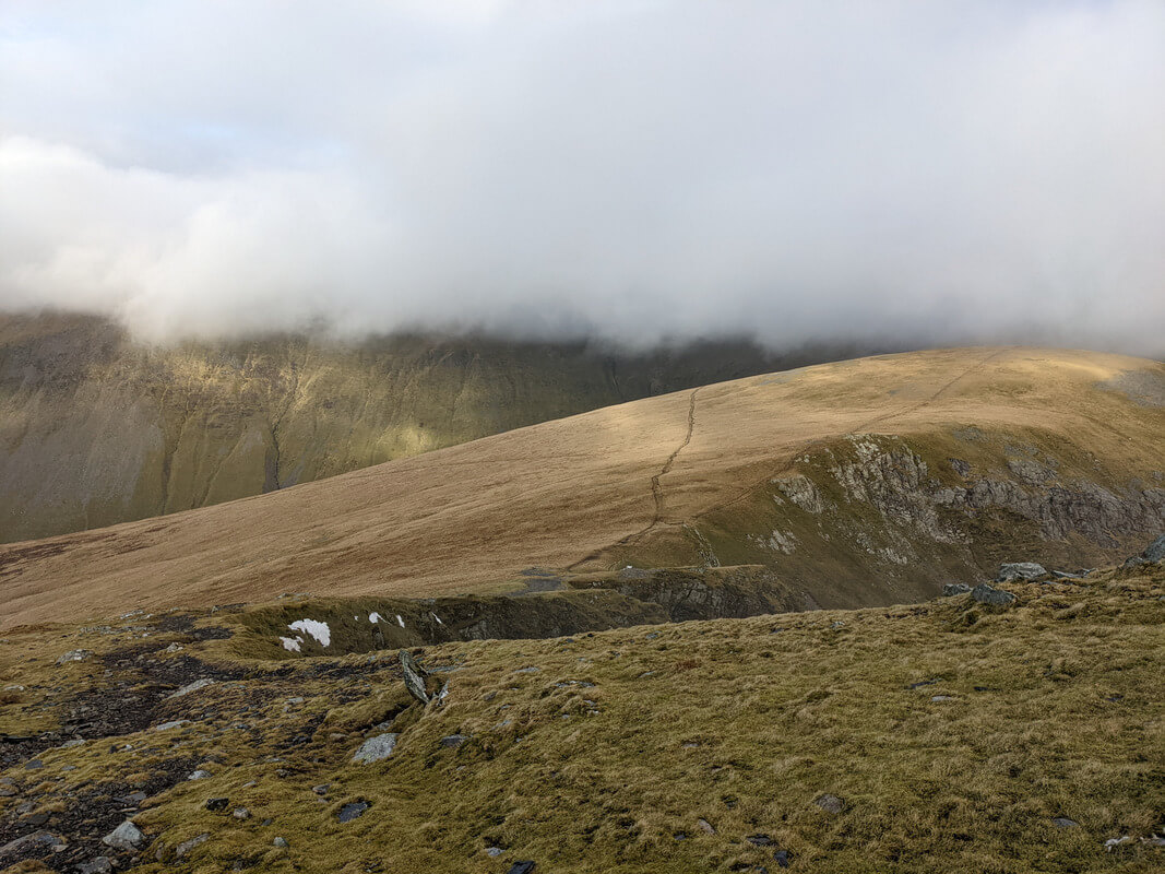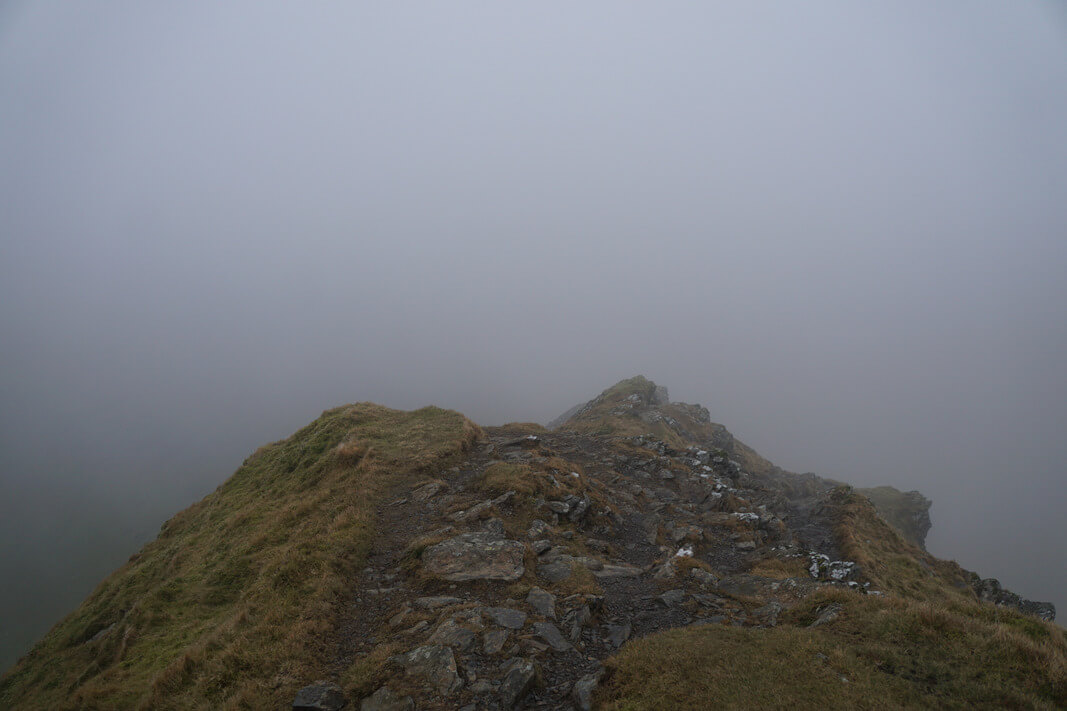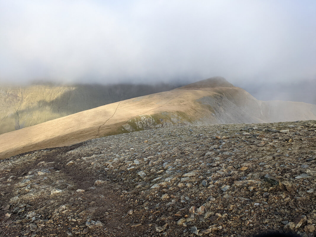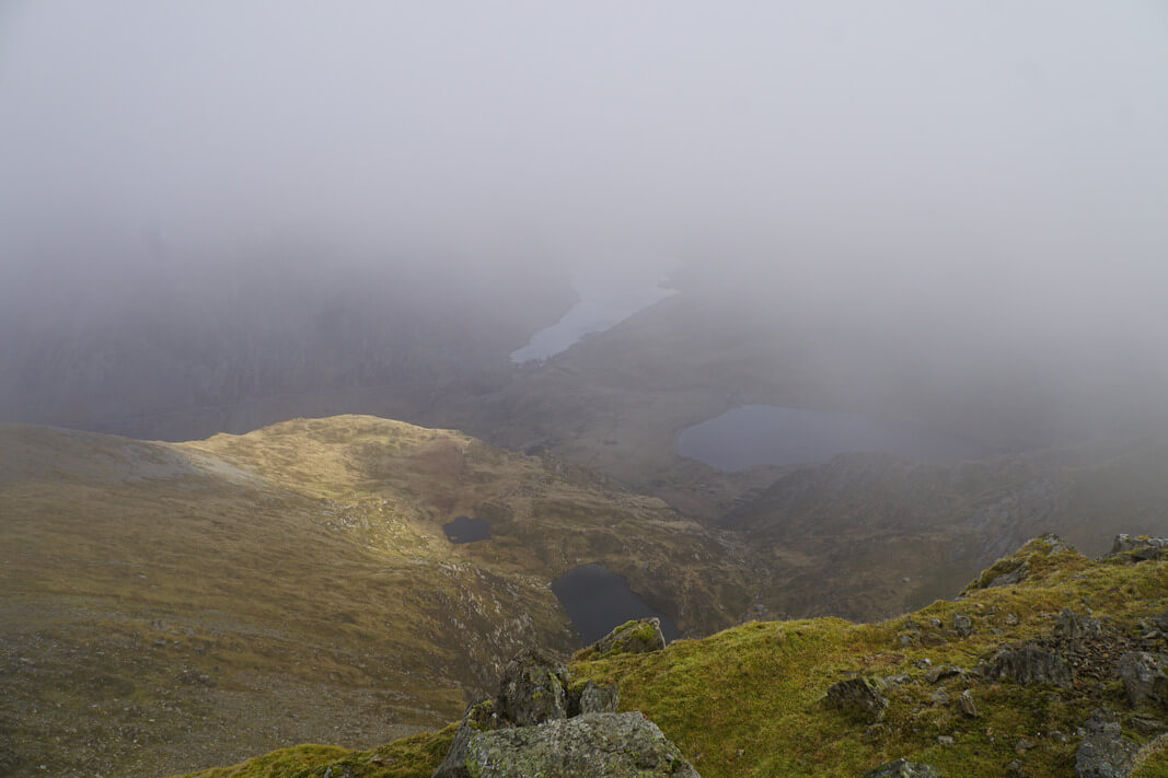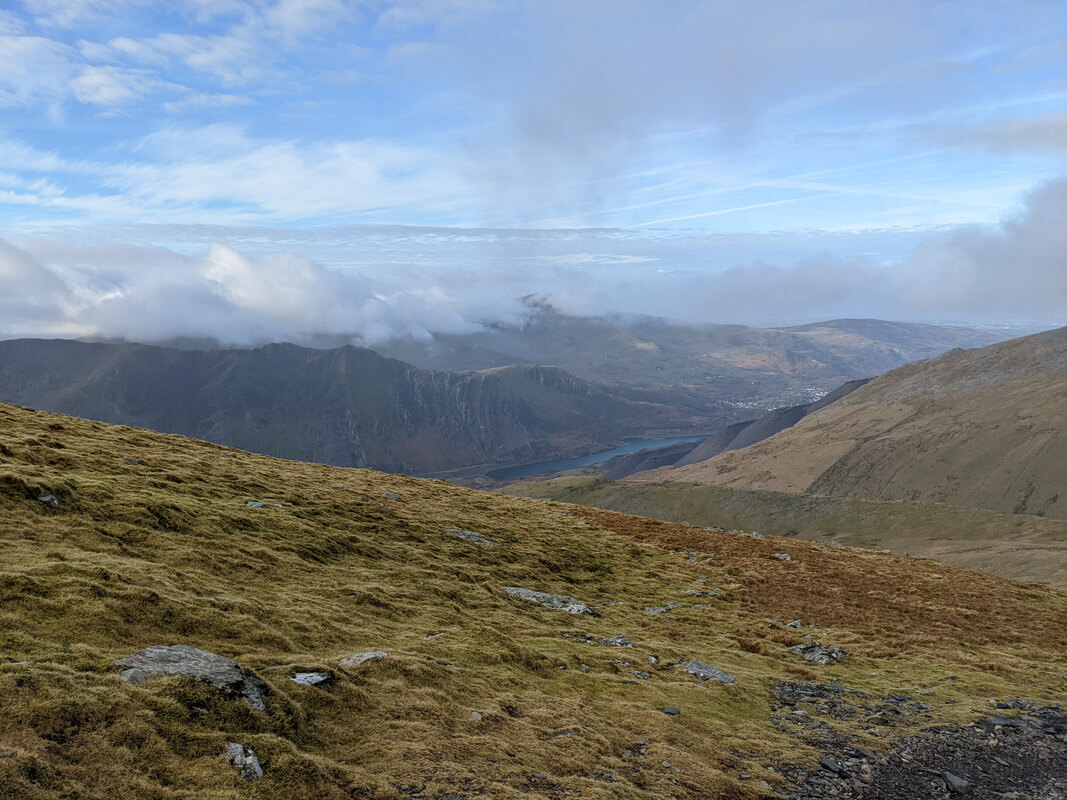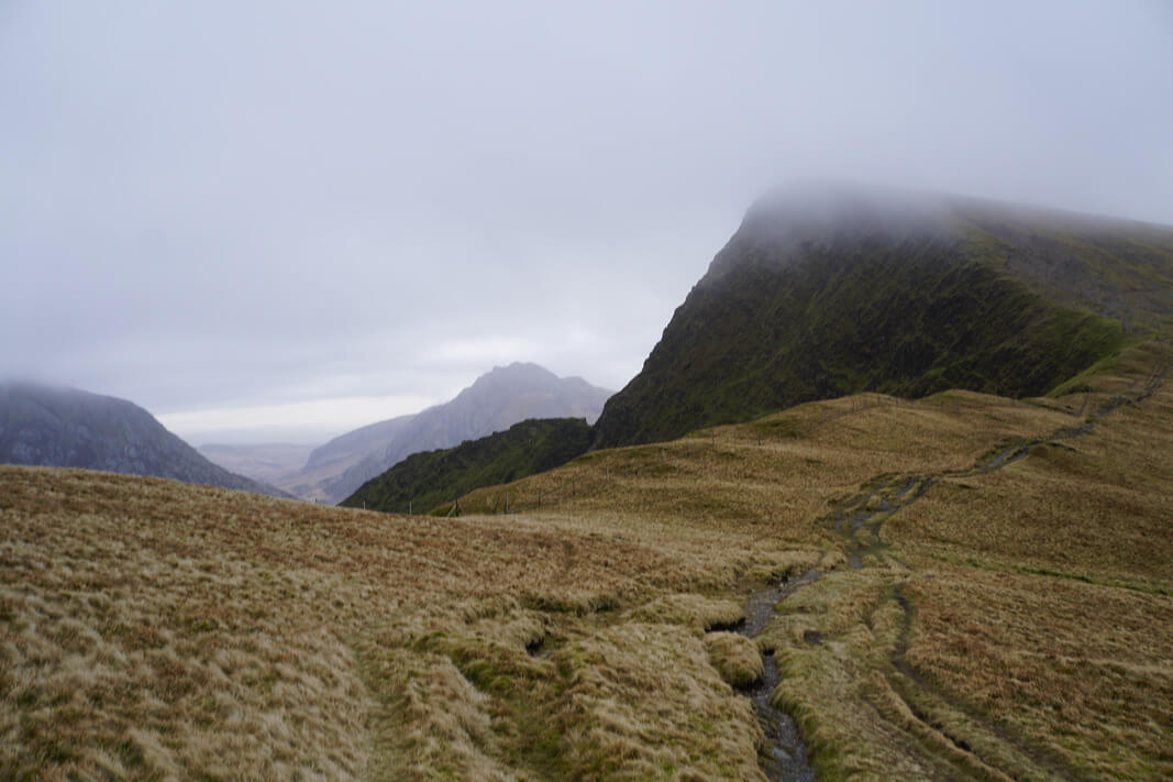 and have time for the long drive home after. The first climb was distinct and really put the burn into the calves. The ridge line of Elidir Fawr was in the clouds