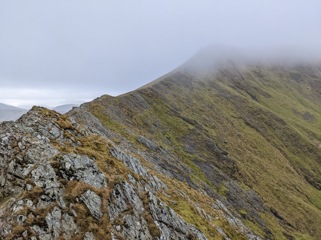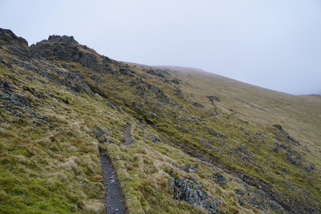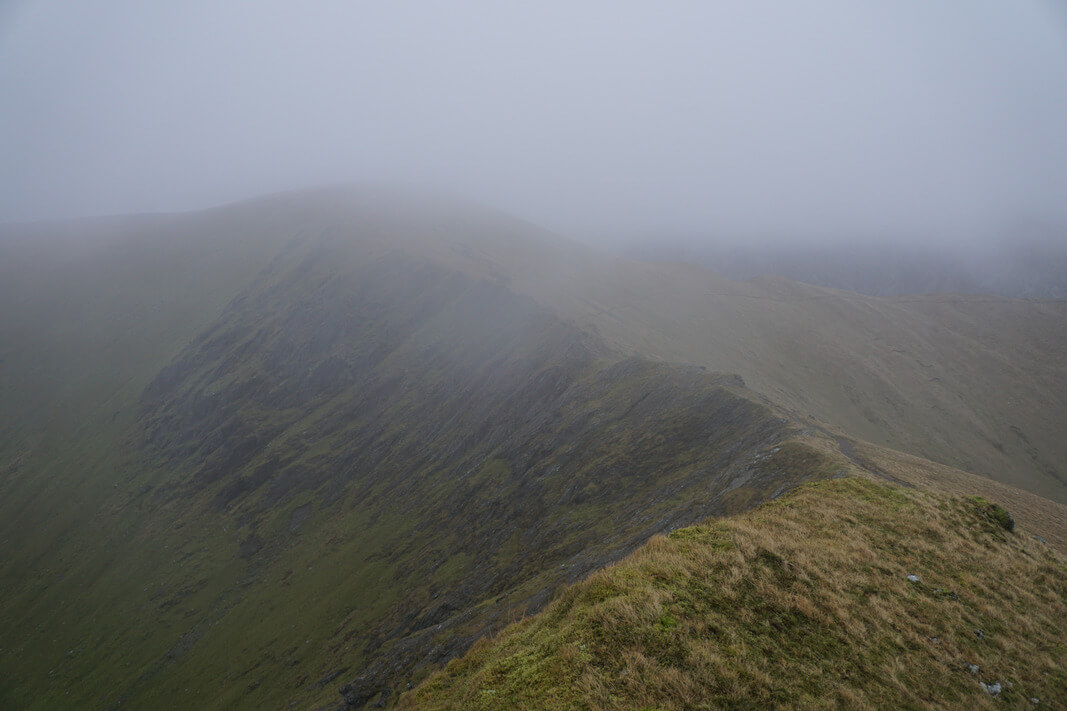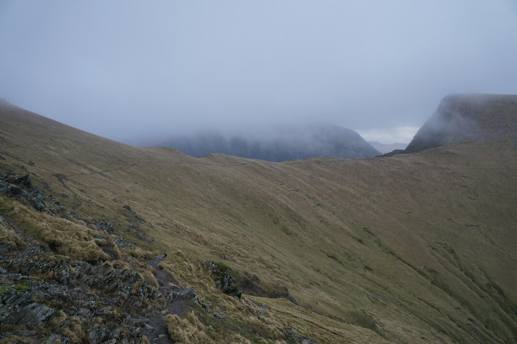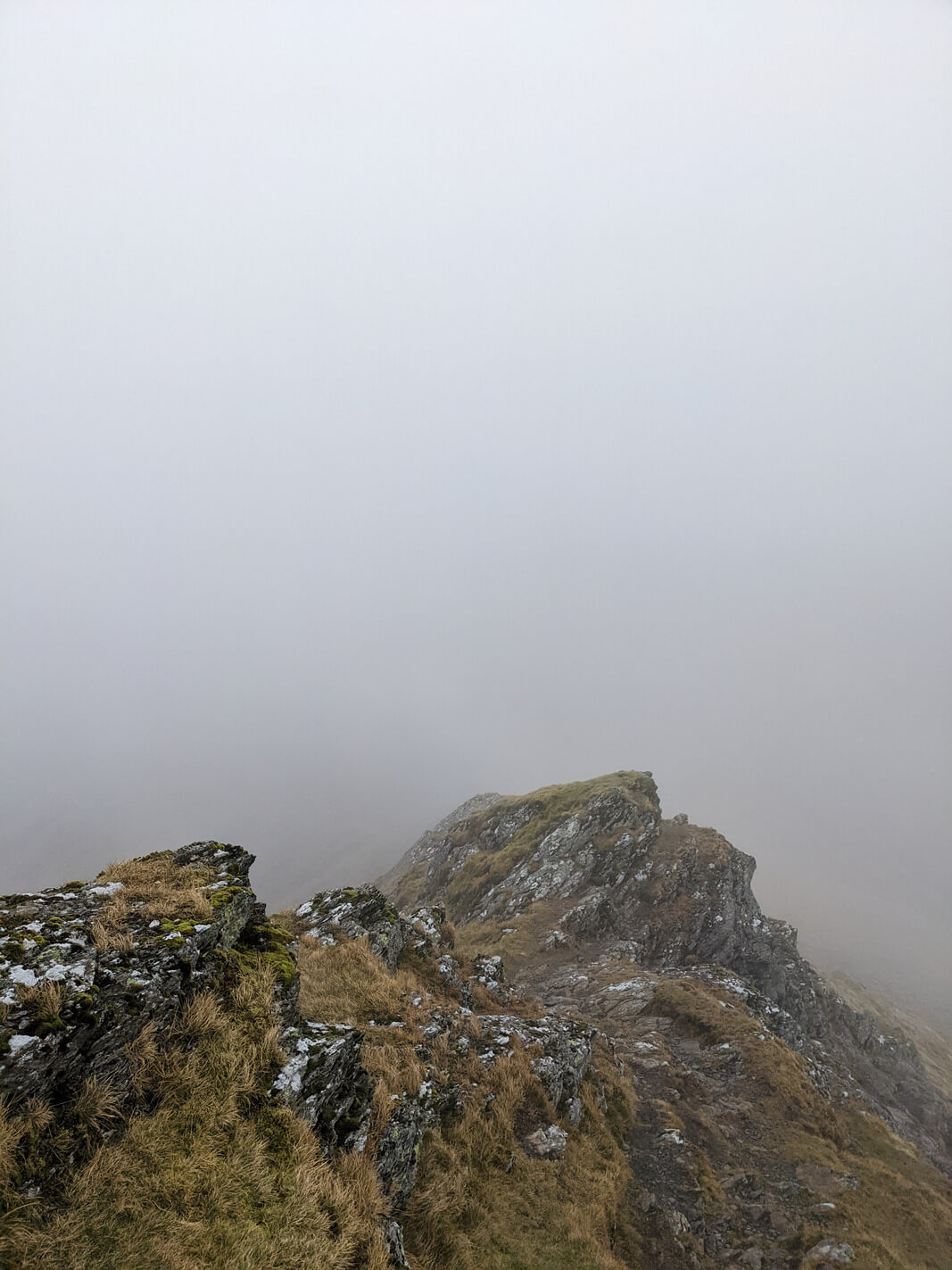 and have time for the long drive home after. The first climb was distinct and really put the burn into the calves. The ridge line of Elidir Fawr was in the clouds