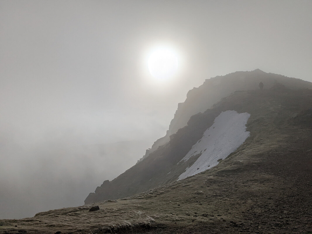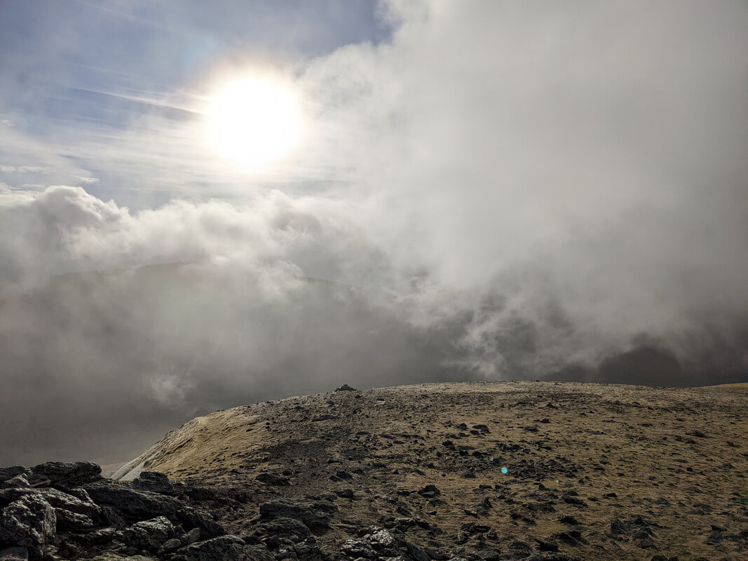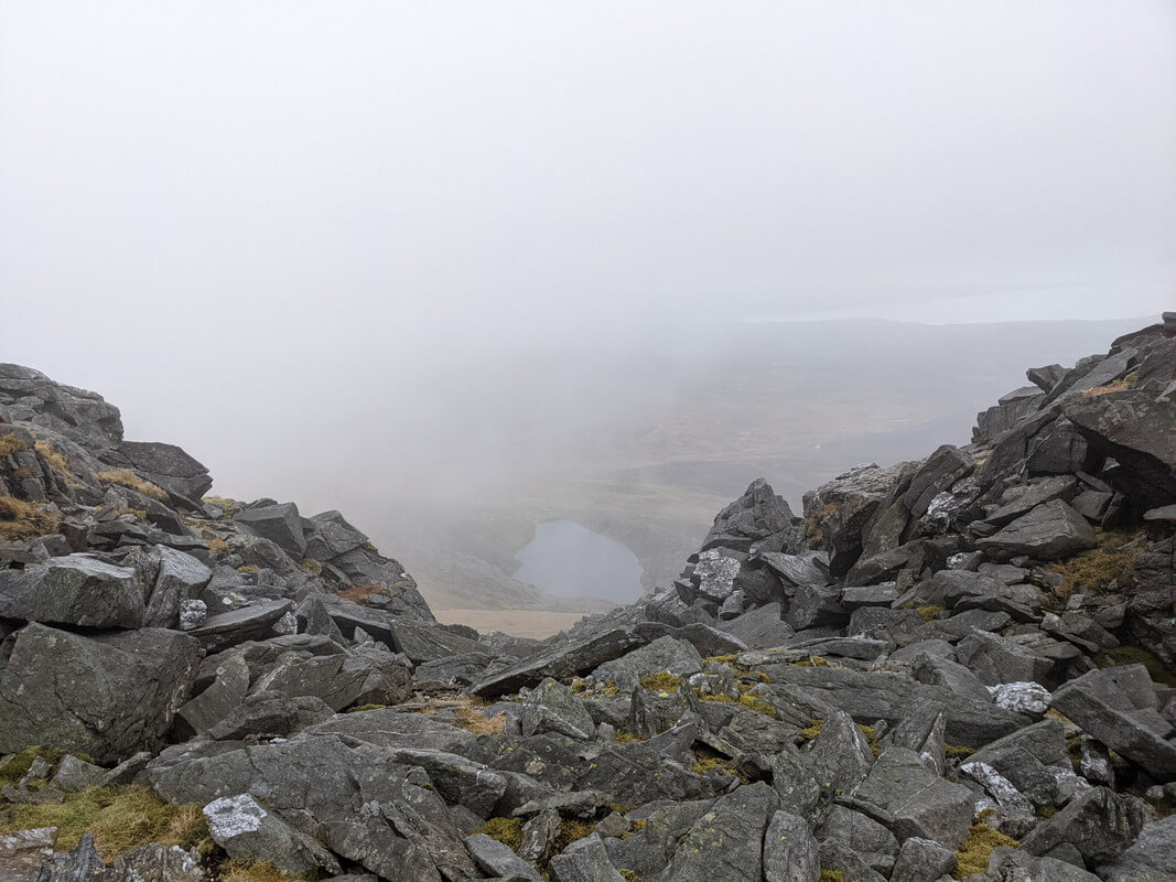 the climb to Y Garn took a long time. I had expected not to see anything as I came up Y Garn, it cloaked in cloud and mist. However on my arrival the sky parted to